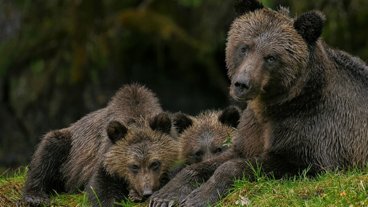 A grizzly bear and her two cubs.